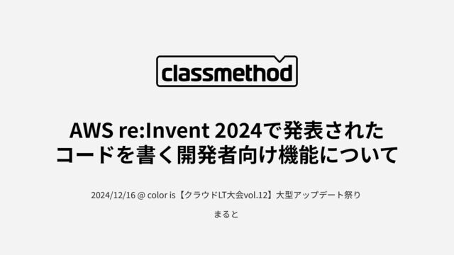 2024/12/16 @ color is【クラウドLT⼤会vol.12】⼤型アップデート祭り まると AWS re:Invent 2024で発表された コードを書く開発者向け機能について