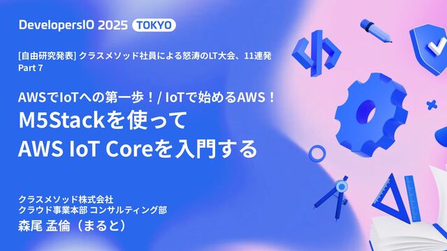 AWSでIoTへの第⼀歩!/ IoTで始めるAWS! M5Stackを使って AWS IoT Coreを⼊⾨する 森尾 孟倫(まると) クラスメソッド株式会社 クラウド事業本部