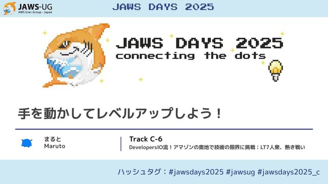 手を動かしてレベルアップしよう! ハッシュタグ:#jawsdays2025 #jawsug #jawsdays2025_c まると Maruto Track C-6 DevelopersIO流!アマゾンの奥地で技術の限界に挑戦:LT7人衆、熱き戦い