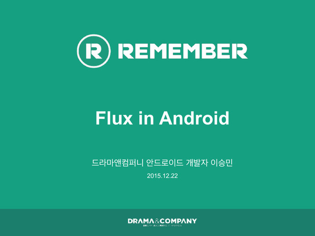드라마앤컴퍼니 사내에서 정선 Phase의 브레이크 기간 중 있었던 사내 개발세미나의 발표 자료입니다. Facebook에서 고안한 Flux 패턴을 안드로이드에 적용한 경험을 공유합니다.