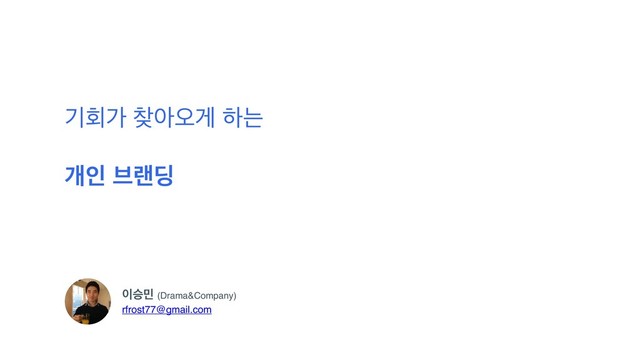 2018년 5월 16일에 녹화한 직업방송 강의쇼 청산유수의 2부 강연자료 입니다. 나에 대해 알림으로써 많은 기회가 찾아오도록 만드는, 누구나 할 수 있는 쉬운 개인 브랜딩에 대한 내용을 담았습니다.