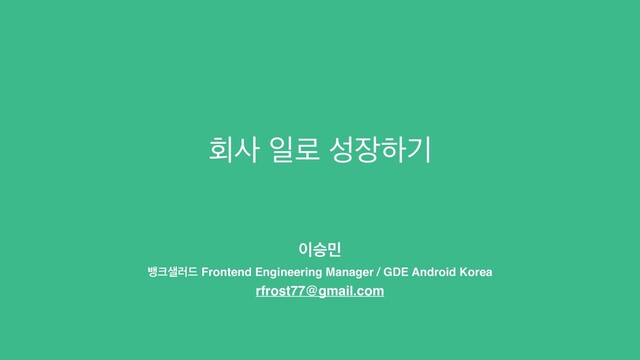 थ ߛ࢟۞٘ Frontend Engineering Manager / GDE Android Korea