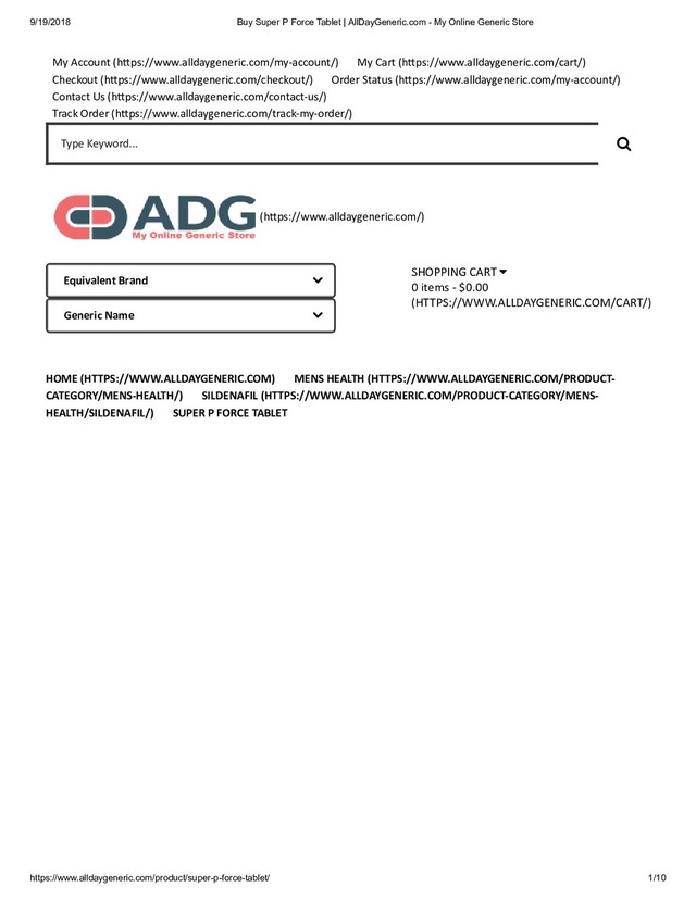 Online Generic Store https://www.alldaygeneric.com/product/super-p-force-tablet/ 5/10 around the world have shown that Super P Force is an effec ve treatment for erec le dysfunc on issues. Each dose lasts up to four hours and some men can get mul ple erec ons from a single dose. Typically, Super P Force is covered by most health insurance plans. Can Super P Force be taken on empty stomach? Yes, absolutely. In fact, it is preferable to take it on empty stomach. Taking the drug a er taking food can delay its working. How to take Super P Force? Super P Force works best if it’s taken approximately one hour before s**ual ac vity. To get an erec on, you will need to be s**ually s mulated. Doctors usually recommend taking 100 mg per day, but the dosage can be decreased to 25 mg or increased to 100 mg if needed. Do not take more than one dose every 24 hours. Super P Force cannot be taken at the same me as other medica ons used to treat male erec le dysfunc on problems. You should not take Super P Force with a high-fat meal, because it can reduce the effec veness of the medica on. Super P Force does not protect you from s**ually transmi ed diseases. Super P Force side effects Any side effects from taking Super P Force are usually minor. Typical side effects include headache, stomach upset, vision problems, dizziness, light sensi vity, flushed skin, and rashes. Rare but serious side effects include hearing problems, temporary blindness, and an erec on that won’t go away. If you have one of these side effects a er taking Super P Force, seek medical a en on. Super P Force precautions Before you start taking Super P Force, see your doctor to discuss your medical history. Let your doctor know if you have high blood pressure, kidney damage, liver damage, sickle cell anemia, cancer, bleeding disorders, myeloma, or if your pe**is has anatomical deformi es. If you are buying Super P Force through AllDayGeneric, be sure to include all your medical informa on on the consulta on form. If you aren’t sure if it’s safe for you to take Super P Force, make an appointment with your doctor. Super P Force contraindications You cannot take Super P Force if you take nitric oxide donor medica ons like nitroglycerin, isosorbide, dinitrate, or nitroprusside. Before taking Super P Force, tell your doctor about all your prescrip on and non-prescrip on medica ons. If you are currently taking quinidine, cime dine, an fungals, niacin, erythromycin, high blood pressure medica ons, or medica on used to treat an HIV infec on, do not start taking Super P Force. See your doctor to discuss your erec le dysfunc on treatment op ons.