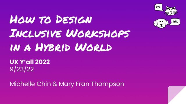 As employees become empowered to decide where they work best, we're rethinking how we collaborate on a daily basis. So how do we meet everyone’s needs when designing and facilitating a workshop?