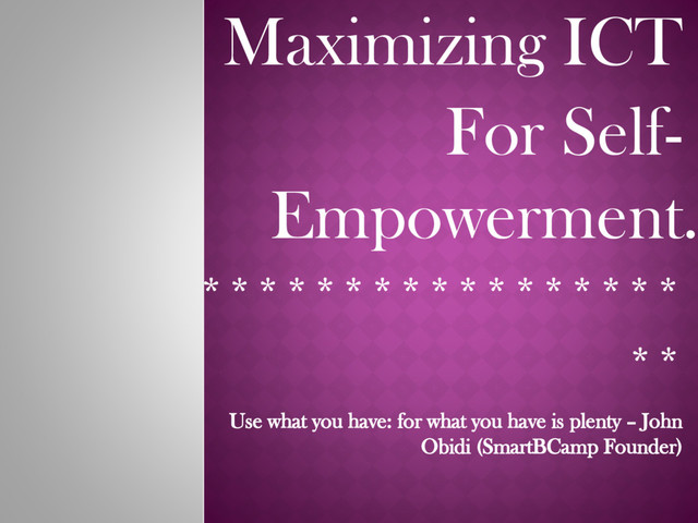 This presentation was made to explain the true nature of ICT, what it mean and how it can be applied to our personal lives on our journey to self empowerment.