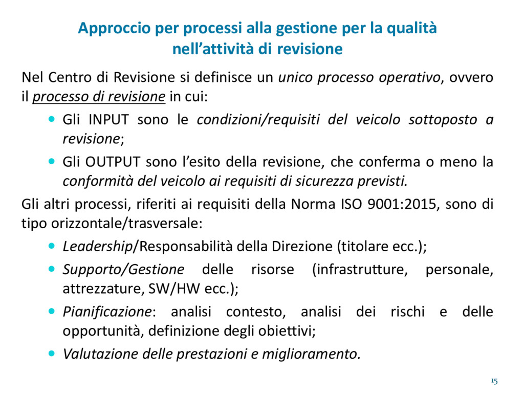 Modulo 3: Qualità e certificazione ISO 9001 dei centri di revisione