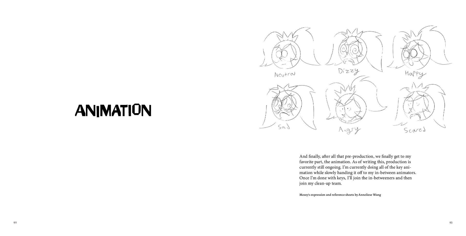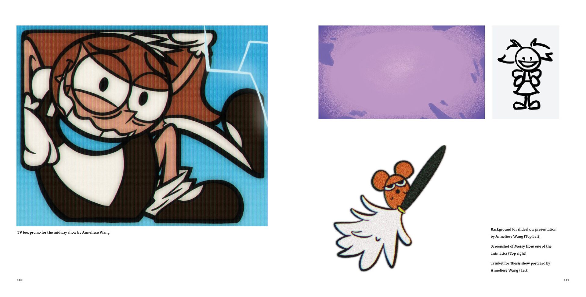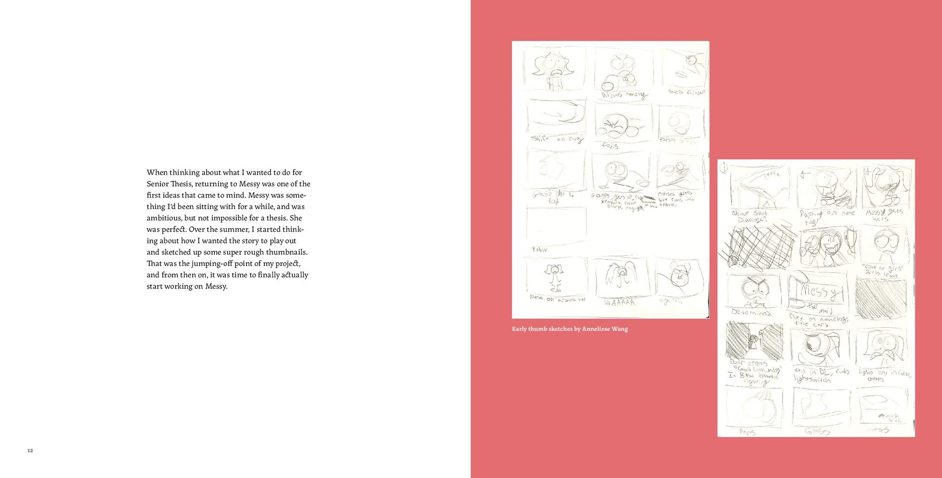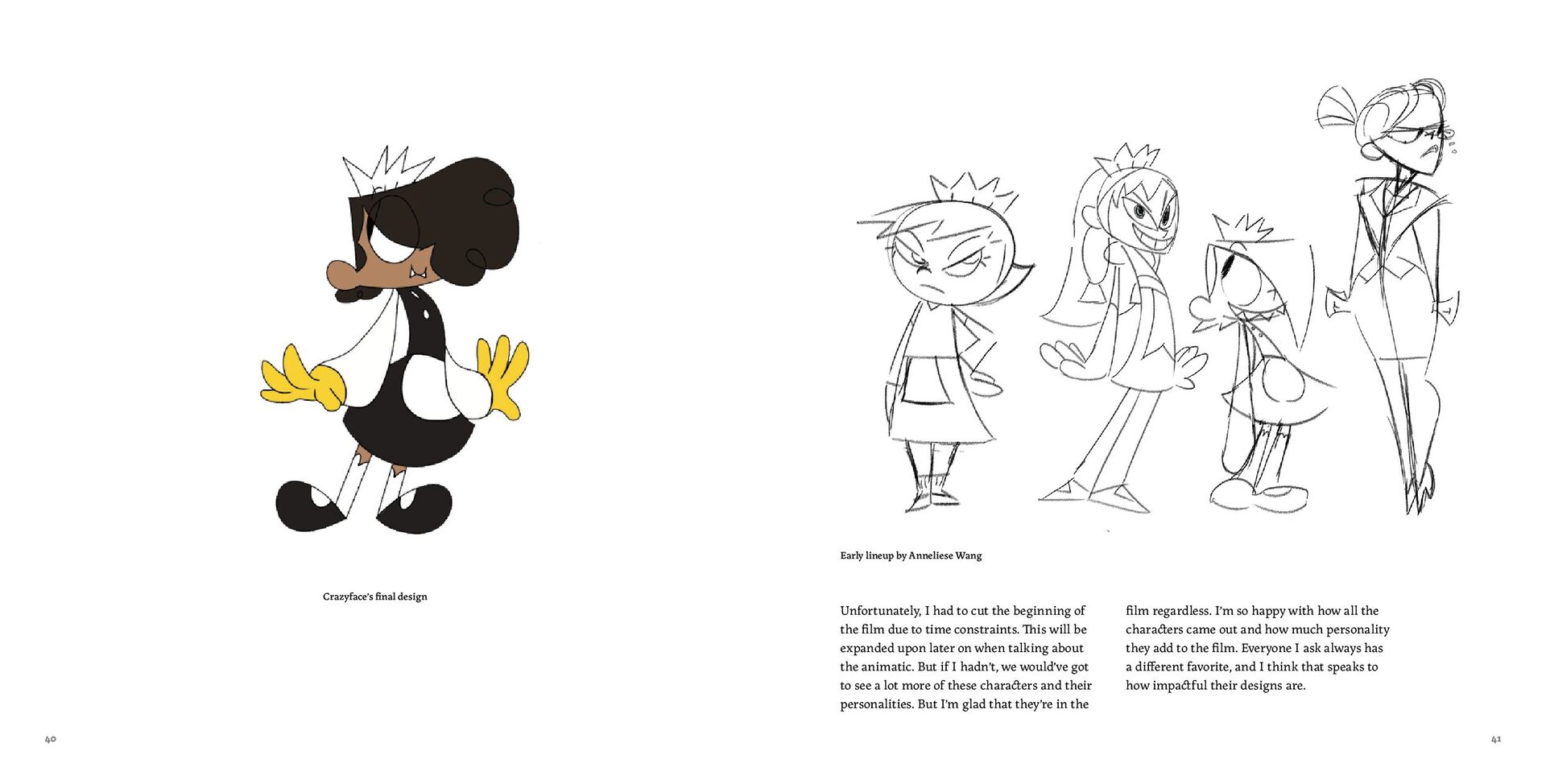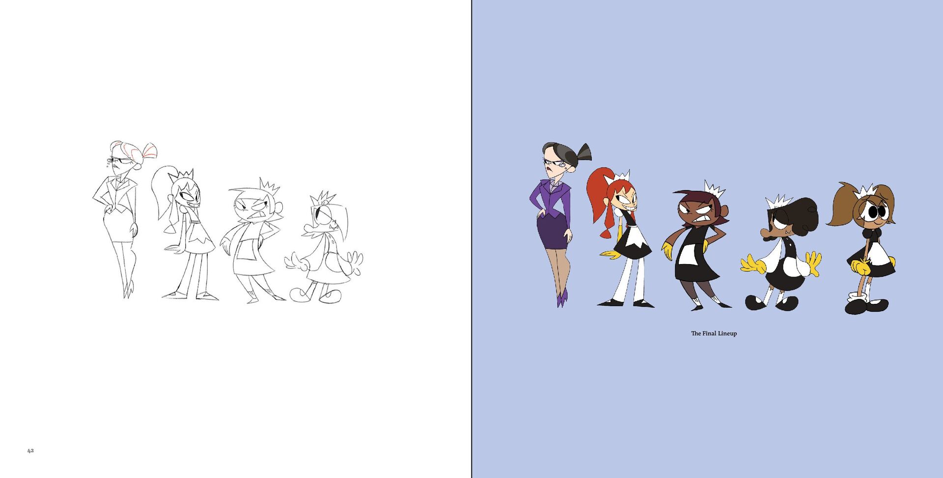 it felt kinda lonely. Messy dealing with the chaos all on her own would still be comedic, but the sense of pity is stronger when she’s dealing with all of it herself. Messy needed an ally, a friend. Someone who would stay by her side and help her when times get tough. Another person in the room with her didn’t make sense, so it didn’t take much brainstorming before landing on her mousey companion. I thought it would be cute and ironic for Messy to make friends with a mouse, something maids tend to get rid of. It’s pretty fitting for Mouse turnaround by Anneliese Wang her character as well, since failing to get rid of a mouse would also be her failing at her job. The Mouse was pretty simple to make. I always imagined him to be just a little blob on her shoulder, providing amusing reactions to the au- dience about the hijinks ensuing on screen. The mouse didn’t take much to develop, so this will be a pretty short section, yet, ironically, it is one of the biggest heroes of our story. Mrs.Bosslady The next question was, who was Messy doing this for? Why was she doing it? Why is she so worried about messing up? Messy needed a boss. So, a boss she was going to get. I’ve always had a pretty solid idea of Mrs. Bosslady ever since I first drew her on the beatboards. A strict, yet sorta sweet lady who takes her job deathly seriously. Some inspirations I took when making her were Professor McGonegale from Harry Potter, Mary Poppins, and Headmistress Bloodgood from Monster High. All of them being very orderly ladies, I took lots of inspiration from their looks and per- sonalities. I especially took inspiration from Sara Bellum from The Powerpuff Girls, though not for her looks or her personality, but for her gimmick. Sara was always angled in a way that you could never see her face, giving her an aura of mystery. I really liked that idea and wanted to incorporate it into Mrs. Bosslady. I was hoping that with Mrs.Bosslady’s facelessness, the audience would have a sense of intimidation from her, the same way she intimidates Messy. It’s not until the very end that we get to see her face. Mrs. Bosslady didn’t go through too many changes, only minor details and color changes that were no less important to the story.