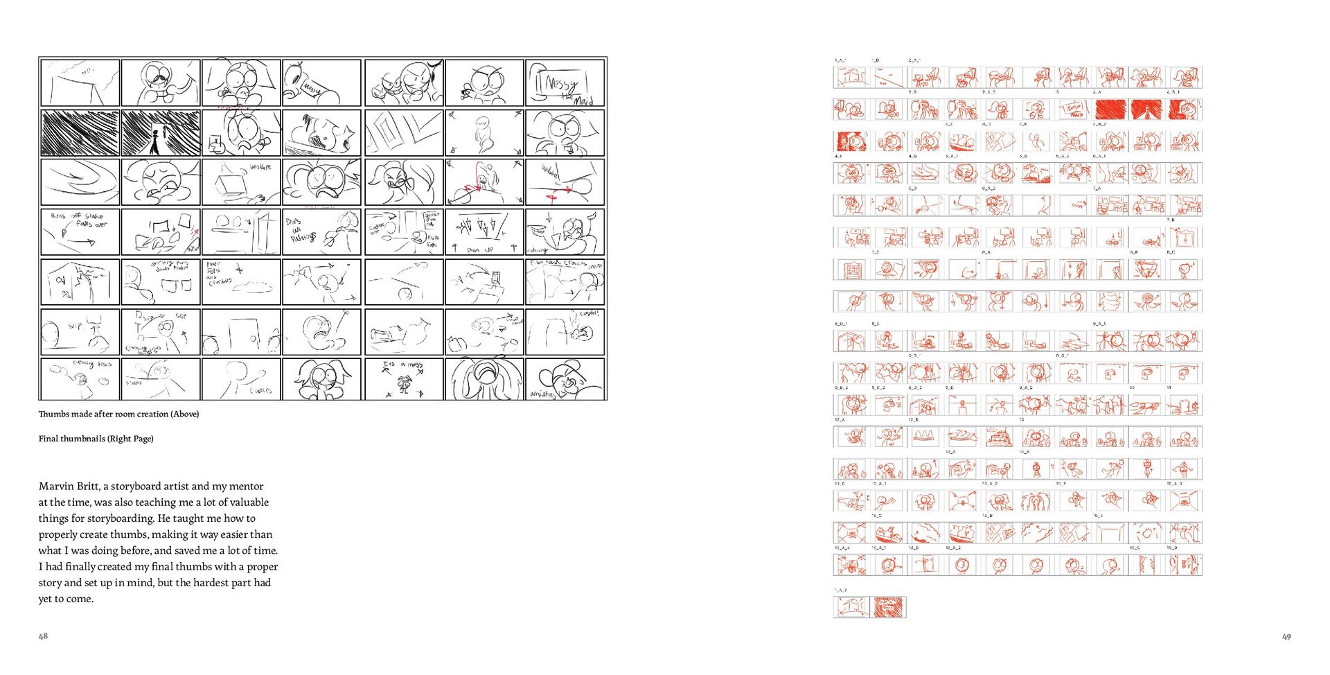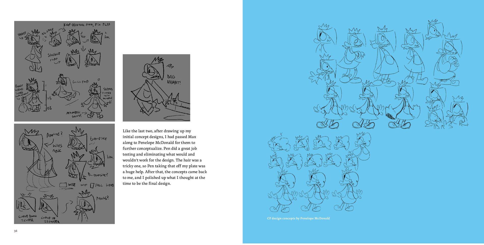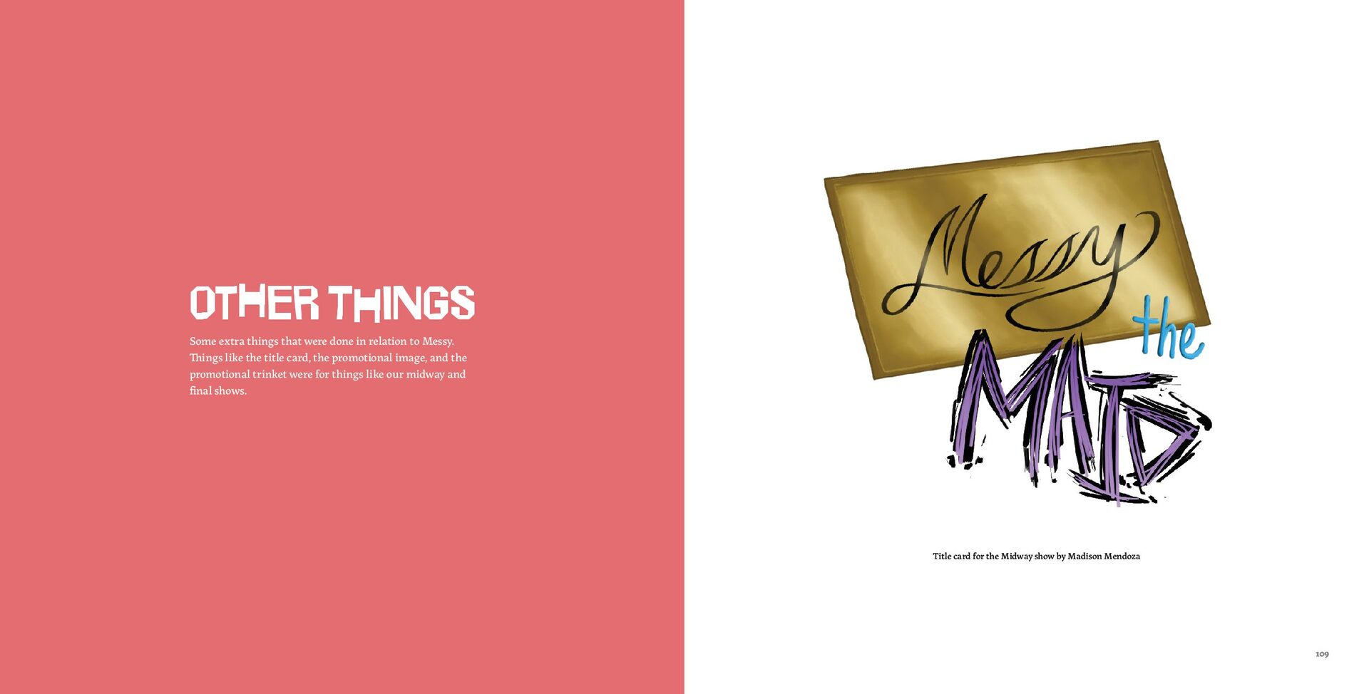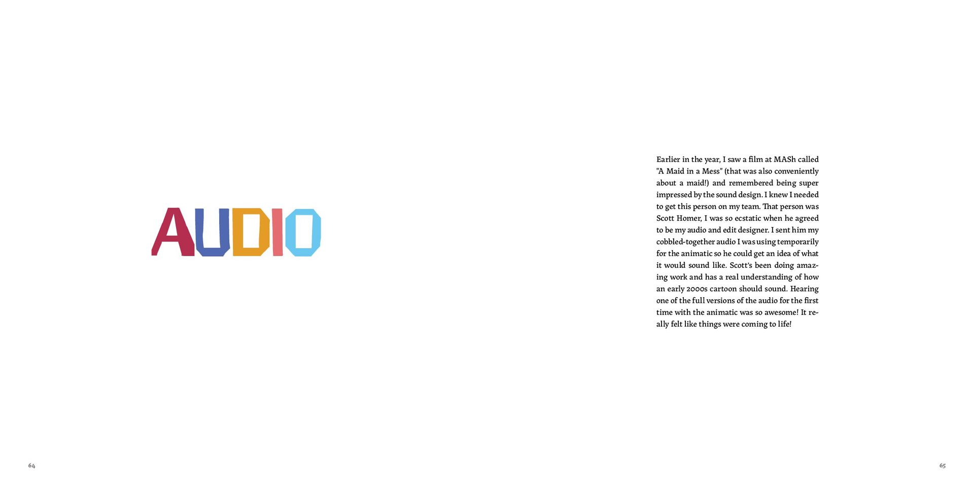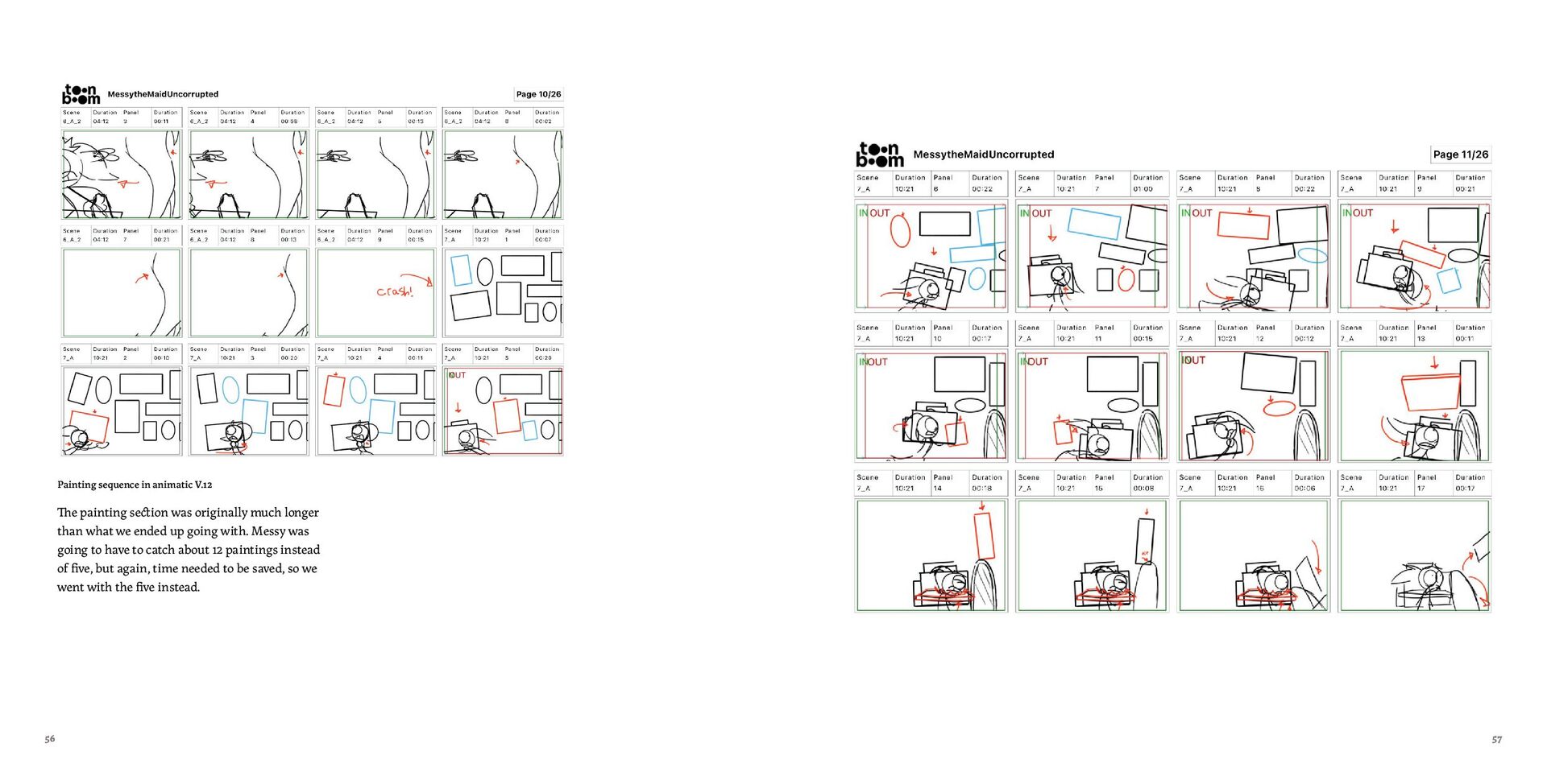 it felt kinda lonely. Messy dealing with the chaos all on her own would still be comedic, but the sense of pity is stronger when she’s dealing with all of it herself. Messy needed an ally, a friend. Someone who would stay by her side and help her when times get tough. Another person in the room with her didn’t make sense, so it didn’t take much brainstorming before landing on her mousey companion. I thought it would be cute and ironic for Messy to make friends with a mouse, something maids tend to get rid of. It’s pretty fitting for Mouse turnaround by Anneliese Wang her character as well, since failing to get rid of a mouse would also be her failing at her job. The Mouse was pretty simple to make. I always imagined him to be just a little blob on her shoulder, providing amusing reactions to the au- dience about the hijinks ensuing on screen. The mouse didn’t take much to develop, so this will be a pretty short section, yet, ironically, it is one of the biggest heroes of our story. Mrs.Bosslady The next question was, who was Messy doing this for? Why was she doing it? Why is she so worried about messing up? Messy needed a boss. So, a boss she was going to get. I’ve always had a pretty solid idea of Mrs. Bosslady ever since I first drew her on the beatboards. A strict, yet sorta sweet lady who takes her job deathly seriously. Some inspirations I took when making her were Professor McGonegale from Harry Potter, Mary Poppins, and Headmistress Bloodgood from Monster High. All of them being very orderly ladies, I took lots of inspiration from their looks and per- sonalities. I especially took inspiration from Sara Bellum from The Powerpuff Girls, though not for her looks or her personality, but for her gimmick. Sara was always angled in a way that you could never see her face, giving her an aura of mystery. I really liked that idea and wanted to incorporate it into Mrs. Bosslady. I was hoping that with Mrs.Bosslady’s facelessness, the audience would have a sense of intimidation from her, the same way she intimidates Messy. It’s not until the very end that we get to see her face. Mrs. Bosslady didn’t go through too many changes, only minor details and color changes that were no less important to the story.