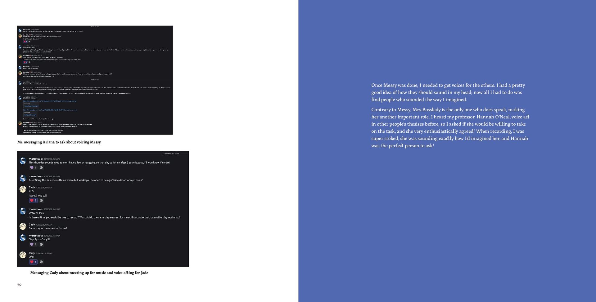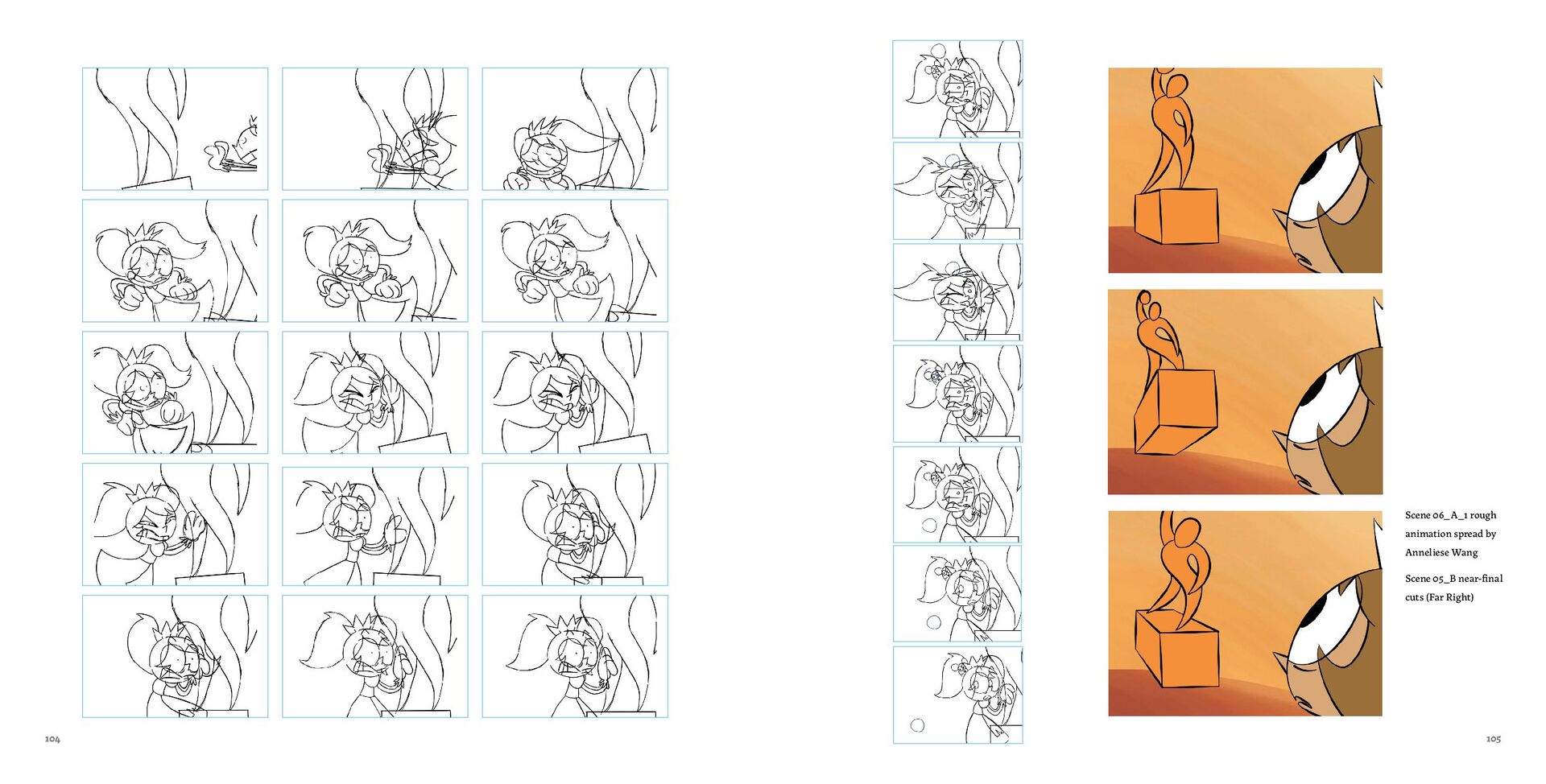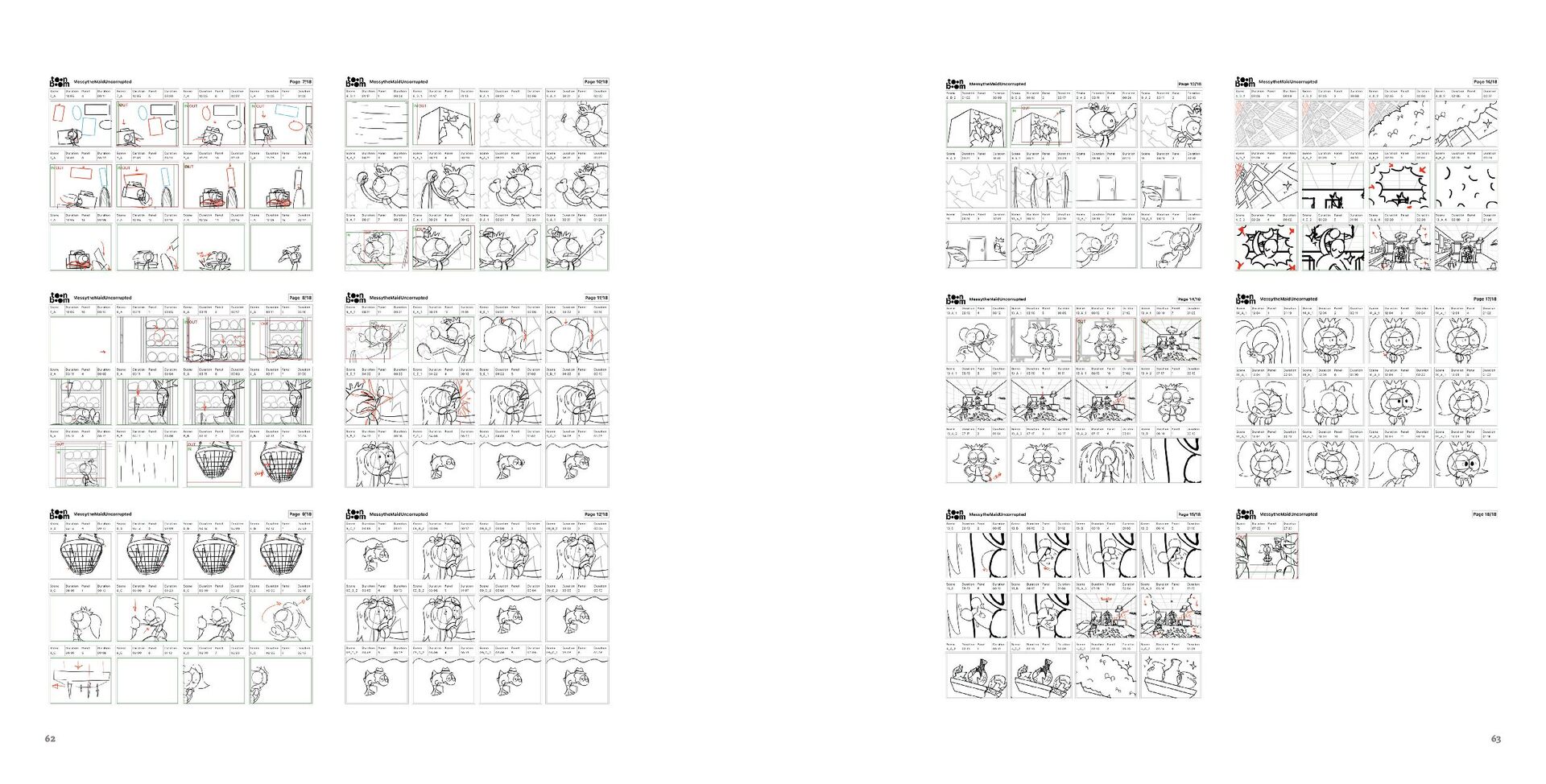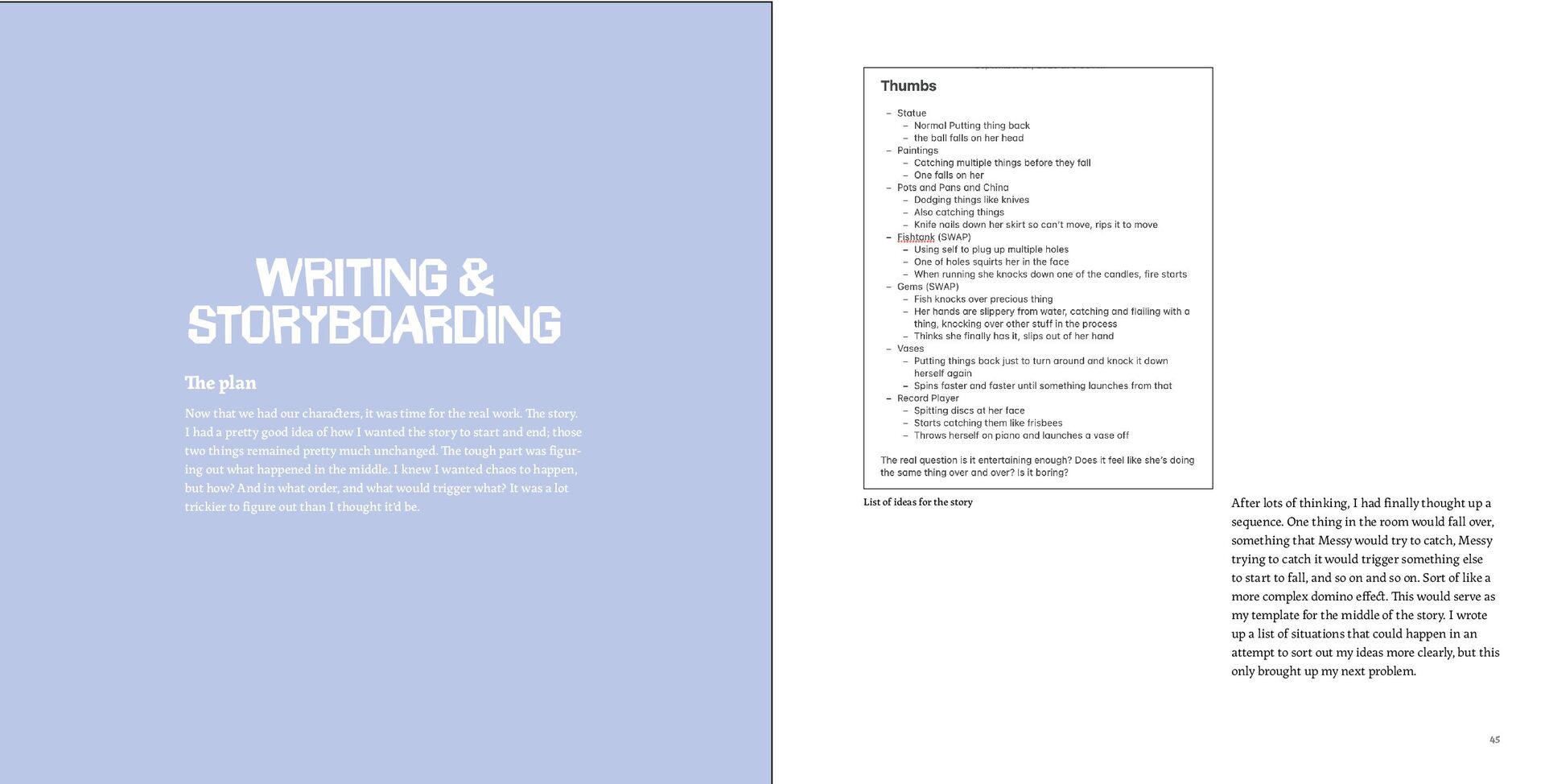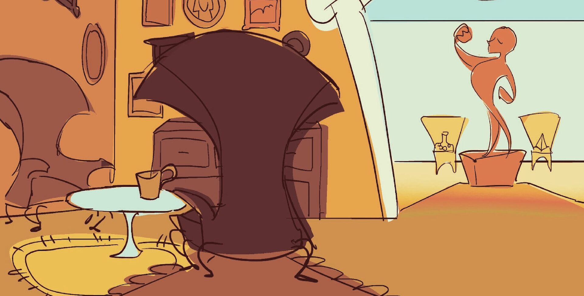 it felt kinda lonely. Messy dealing with the chaos all on her own would still be comedic, but the sense of pity is stronger when she’s dealing with all of it herself. Messy needed an ally, a friend. Someone who would stay by her side and help her when times get tough. Another person in the room with her didn’t make sense, so it didn’t take much brainstorming before landing on her mousey companion. I thought it would be cute and ironic for Messy to make friends with a mouse, something maids tend to get rid of. It’s pretty fitting for Mouse turnaround by Anneliese Wang her character as well, since failing to get rid of a mouse would also be her failing at her job. The Mouse was pretty simple to make. I always imagined him to be just a little blob on her shoulder, providing amusing reactions to the au- dience about the hijinks ensuing on screen. The mouse didn’t take much to develop, so this will be a pretty short section, yet, ironically, it is one of the biggest heroes of our story. Mrs.Bosslady The next question was, who was Messy doing this for? Why was she doing it? Why is she so worried about messing up? Messy needed a boss. So, a boss she was going to get. I’ve always had a pretty solid idea of Mrs. Bosslady ever since I first drew her on the beatboards. A strict, yet sorta sweet lady who takes her job deathly seriously. Some inspirations I took when making her were Professor McGonegale from Harry Potter, Mary Poppins, and Headmistress Bloodgood from Monster High. All of them being very orderly ladies, I took lots of inspiration from their looks and per- sonalities. I especially took inspiration from Sara Bellum from The Powerpuff Girls, though not for her looks or her personality, but for her gimmick. Sara was always angled in a way that you could never see her face, giving her an aura of mystery. I really liked that idea and wanted to incorporate it into Mrs. Bosslady. I was hoping that with Mrs.Bosslady’s facelessness, the audience would have a sense of intimidation from her, the same way she intimidates Messy. It’s not until the very end that we get to see her face. Mrs. Bosslady didn’t go through too many changes, only minor details and color changes that were no less important to the story.
