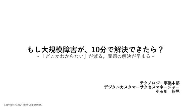 APMについて紹介し、どのように大規模障害を解決していくのか、その効果について説明しています。