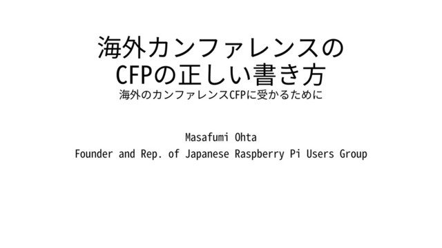 海外カンファレンスの CFPの正しい書き⽅ 海外のカンファレンスCFPに受かるために Masafumi Ohta Founder and Rep. of Japanese