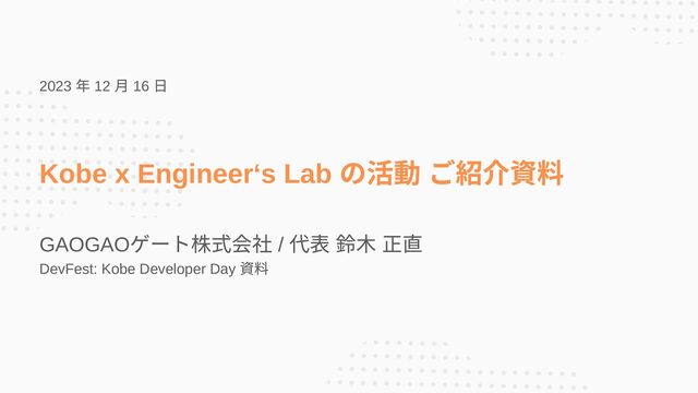 の活動 ご紹介資料 GAOGAO ゲート株式会社 / 代表 鈴木 正直 DevFest: Kobe Developer Day 資料