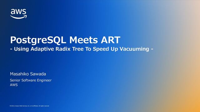 rights reserved. Development Timeline • Started a thread “[PoC] Improve dead tuple storage for lazy vacuum” on pgsql-hackers in 2021. • Started with looking for better data structures. • candidates: integerset.c, tidbitmap.c, Roaring Bitmap, radix tree etc. • Wrote PoC codes, evaluated these data structures performance. • Started to implement radix tree in 2022. • The first radix tree implementation is based on the prototype implemented by Andres Freund. • Committed on 7 March 2024 (ee1b30f128d8f6) by John Naylor. 11