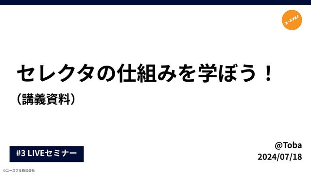 セレクタの仕組みを学ぼう! (講義資料) @Toba 2024/07/18 #3 LIVEセミナー ©ユースフル株式会社
