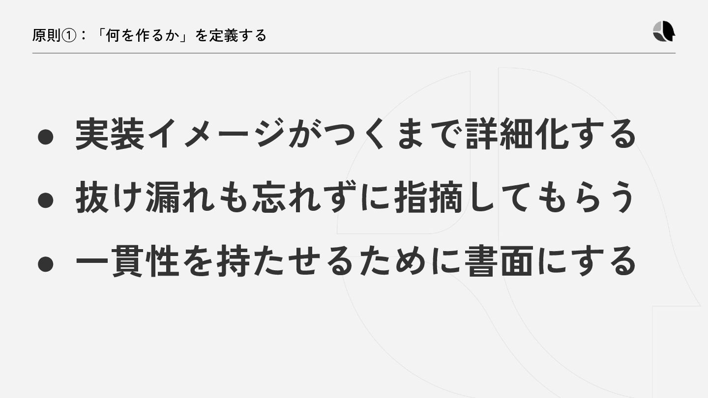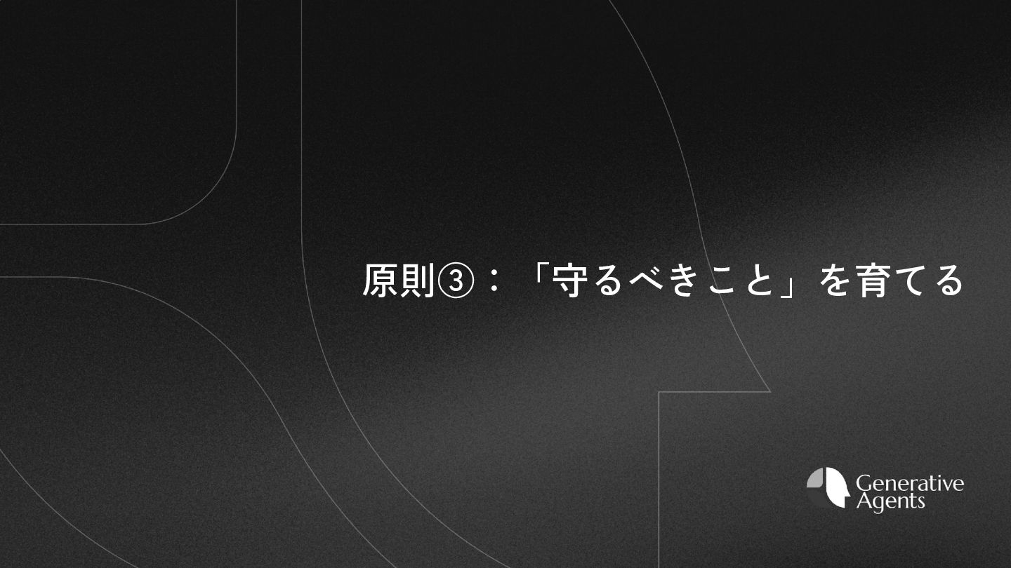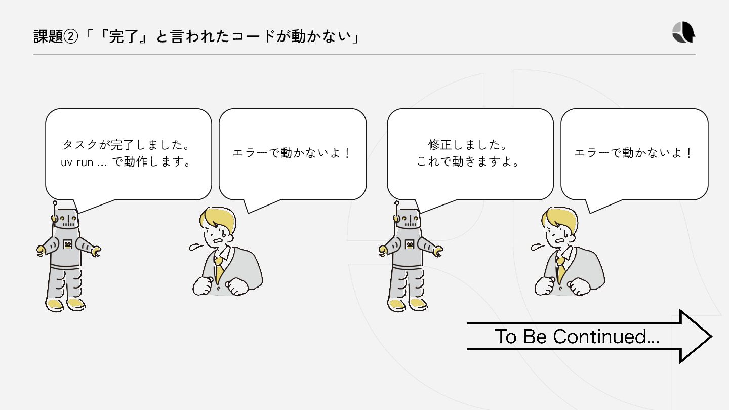 課題③ そもそもプランニング できるほどの情報が 与えられていない そもそも確認する手段 が与えられていない (分からない) そもそも行動を制御す る仕組みが与えられて いない(自由意志) 「何を作るか」を 定義する 「自己検証」を 仕組み化する 「守るべきこと」を 育てる
