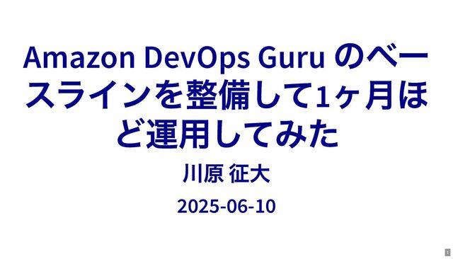 Amazon DevOps Guru のベー スラインを整備して1 ヶ月ほ ど運用してみた 川原 征大 2025-06-10