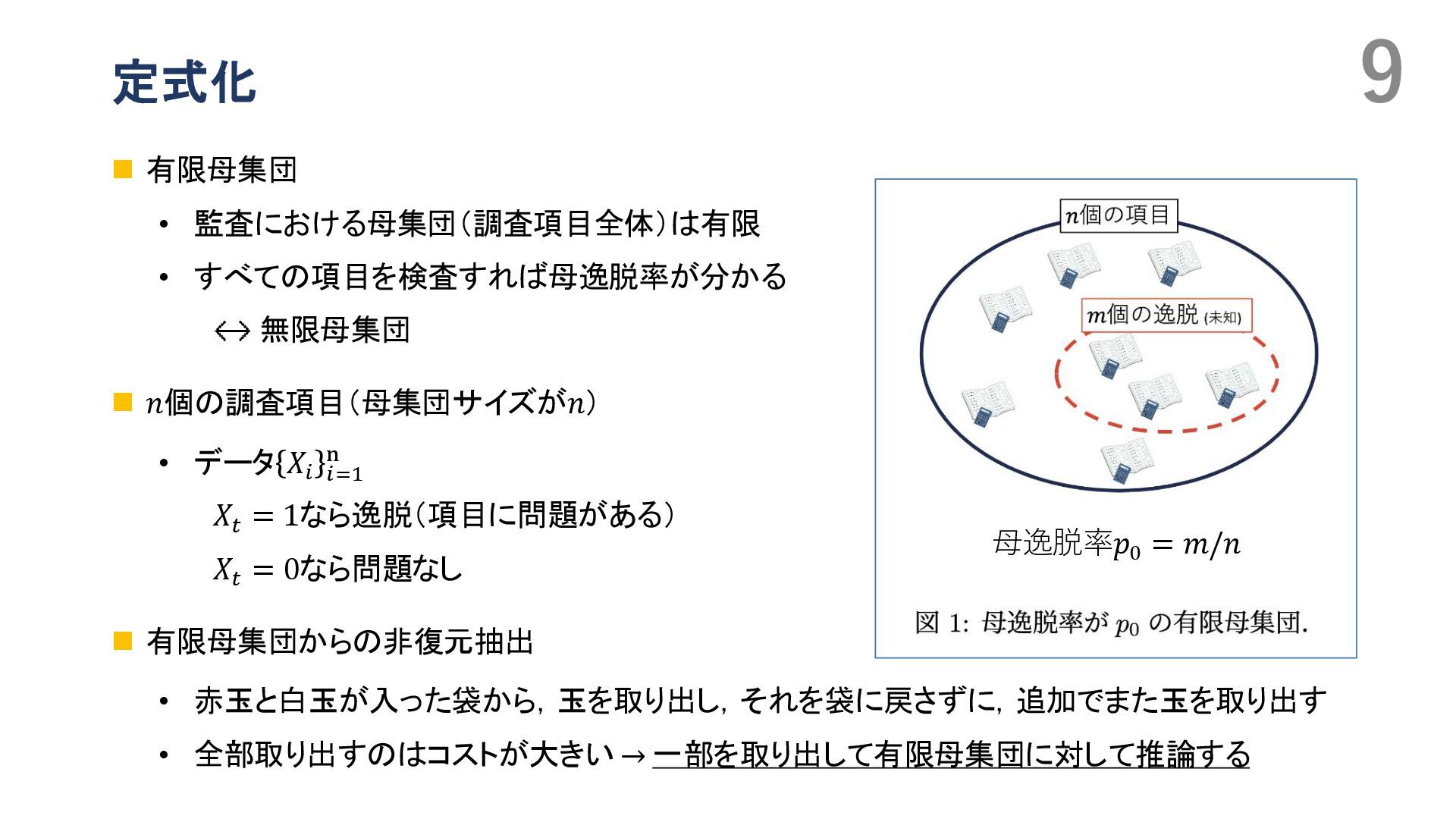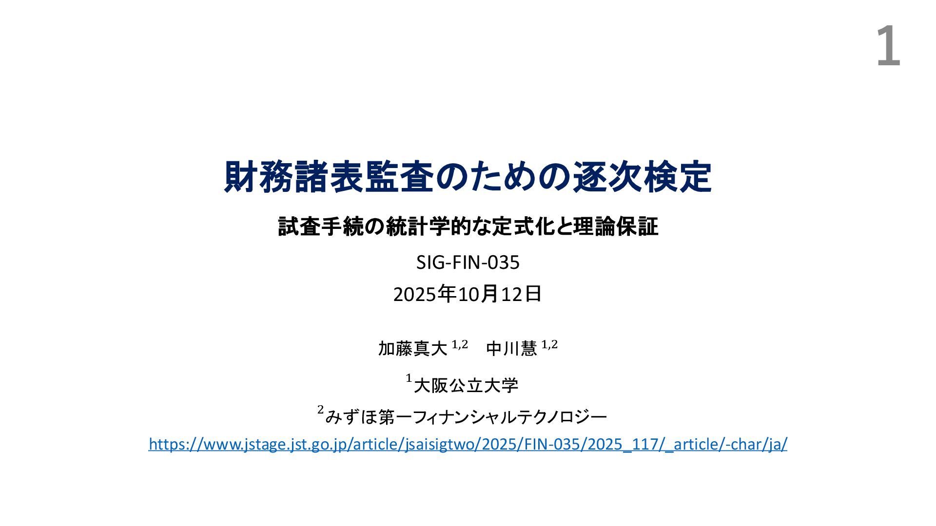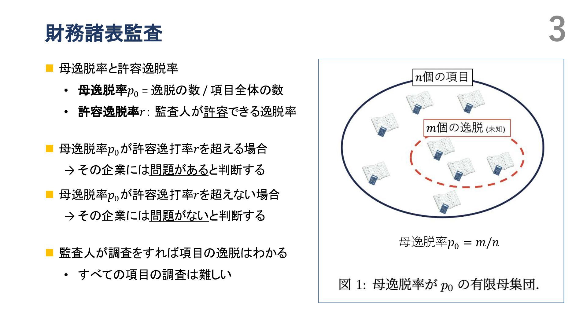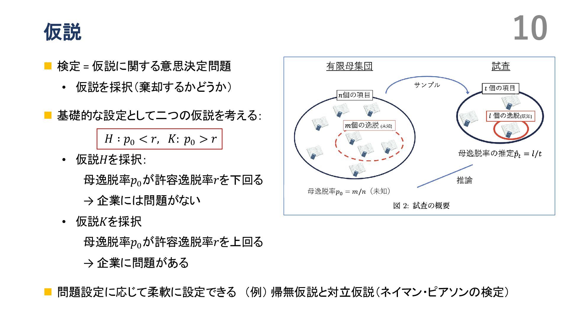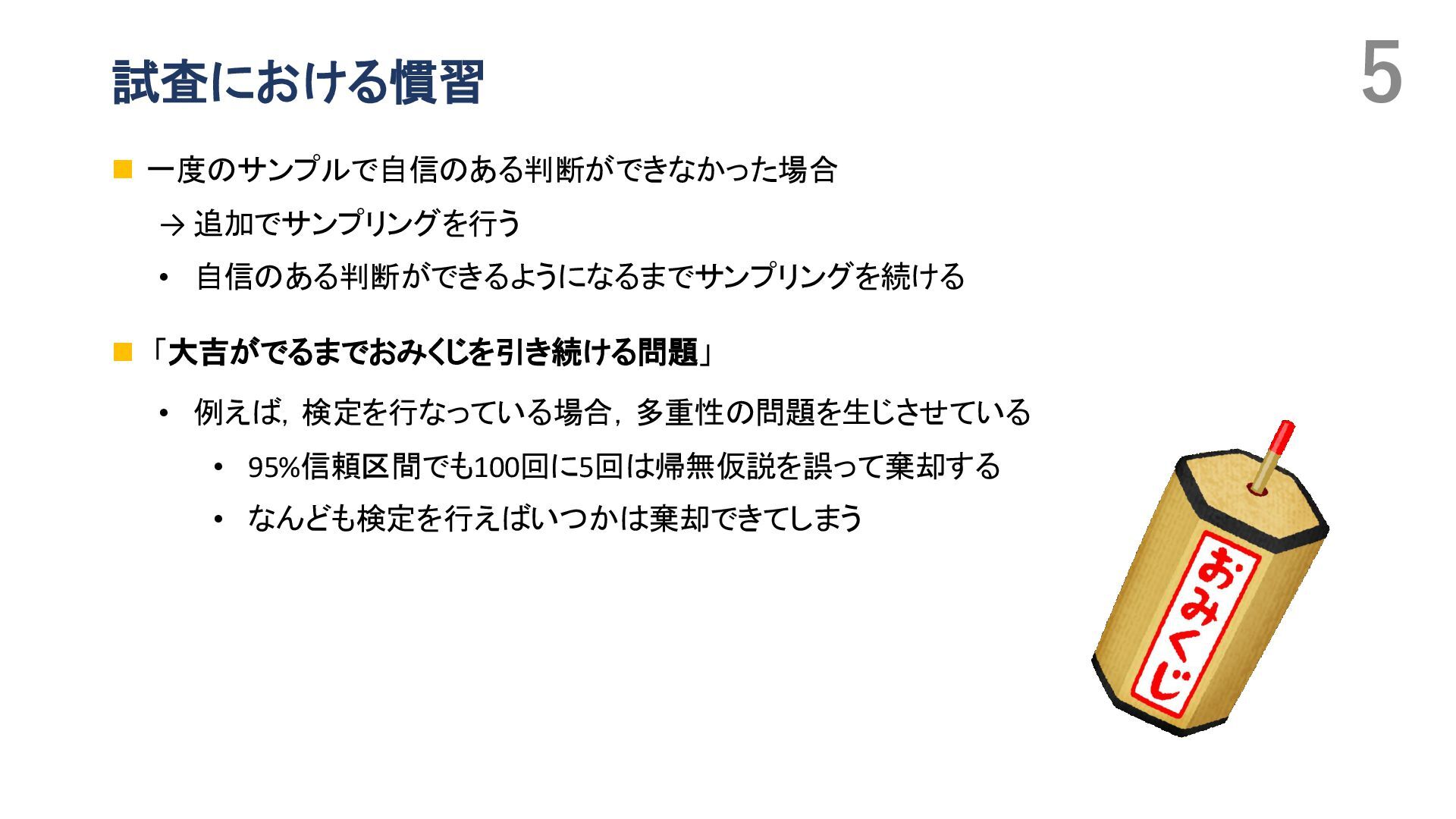 𝑟 − 𝜃𝐻 ]),すべての𝑡において以下が成立 ℙ𝑝 𝑡期に仮説𝐾を採択 = ℙ𝑝 Ƹ 𝑝𝑡 > 𝜅𝑟 𝑡 , ∀𝑠 ∈ 𝑡 − 1 Ƹ 𝑝𝑠 ∈ [𝜅𝑟 𝑠 , 𝜅𝑟 𝑠 ] ≤ 𝛼 • 同様に,仮説𝐾が正しい場合(for all 𝑝 ∈ [ 𝑟 + 𝜃𝐾 , 1]),すべての𝑡において以下が成立 ℙ𝑝 𝑡期に仮説𝐻を採択 = ℙ𝑝 Ƹ 𝑝𝑡 < 𝜅𝑟 𝑠 , ∀𝑠 ∈ 𝑡 − 1 Ƹ 𝑝𝑠 ∈ [𝜅𝑟 𝑠 , 𝜅𝑟 𝑠 ] ≤ 𝛼 ◼ ある𝑡期の誤判断確率は過去の系列 𝜅𝑟 𝑠 , 𝜅𝑟 𝑠 𝑠=1 𝑡−1 に依存 • 𝑡 = 1から順番に決定すれば良い • 𝑡の時点では,過去の 𝜅𝑟 𝑠 , 𝜅𝑟 𝑠 𝑠=1 𝑡−1 を所与として, 実際に候補となる 𝜅𝑟 𝑡 , 𝜅𝑟 𝑡 のもとで誤判断確率を計算 • 誤判断確率を制御しつつ,可能な限り小さい𝜅𝑟 𝑡 と可能な限り大きい𝜅𝑟 𝑠 を選ぶ