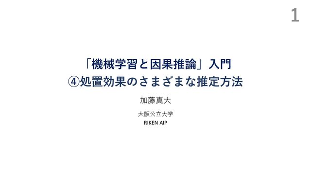 1 「機械学習と因果推論」入門 ④処置効果のさまざまな推定方法 加藤真大 大阪公立大学 RIKEN AIP