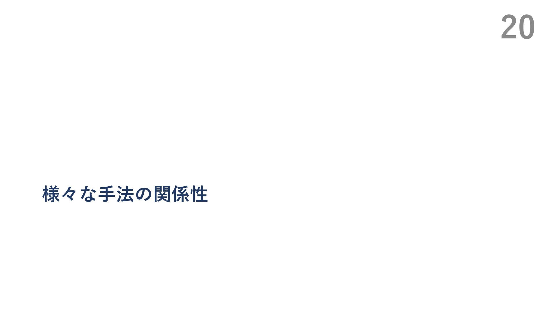 19 もっとも基礎的な推定量 ◼ 個人的には、以下のように考えている: • 最尤推定・漸近効率性の観点でもっとも基礎的な推定量は AIPW推定量(二重に頑健な推定量) • 回帰分析の観点でもっとも基礎的な推定量は 回帰調整推定量