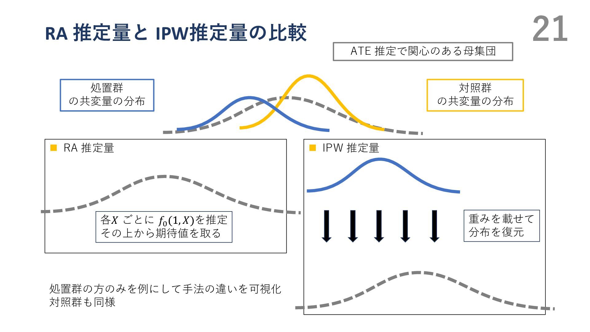 21 RA 推定量と IPW推定量の比較 ◼ IPW 推定量 ◼ RA 推定量