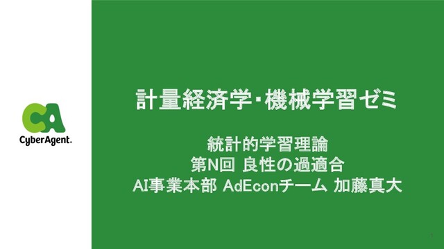 計量経済学・機械学習ゼミ 統計的学習理論 第N回 良性の過適合 AI事業本部 AdEconチーム 加藤真大 1