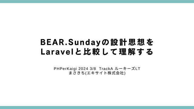 BEAR.Sundayの設計思想を Laravelと比較して理解する PHPerKaigi 2024 3/8 TrackA ルーキーズLT まさきち( エキサイト株式会社)