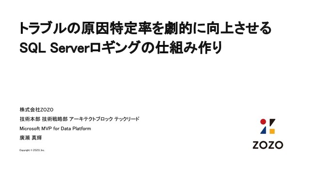 トラブルの原因特定率を劇的に向上させる SQL Serverロギングの仕組み作り 株式会社ZOZO 技術本部 技術戦略部 アーキテクトブロック テックリード Microsoft MVP