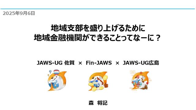 地域支部を盛り上げるために 地域金融機関ができることってなーに? 2025年9月6日 JAWS-UG 佐賀 × Fin-JAWS × JAWS-UG広島 森
