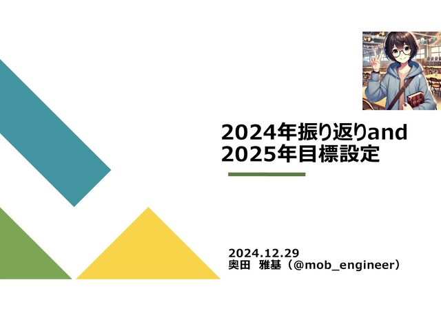 2024年振り返りand 2025年目標設定 2024.12.29 奥田 雅基(@mob_engineer)