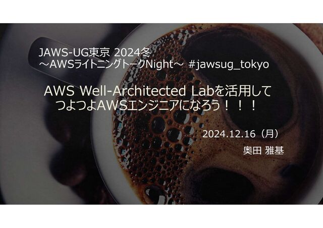 2024.12.16(月)のJAWS-UG東京 2024冬 〜AWSライトニングトークNight〜登壇資料となります。 イベントページ:https://jawsug.connpass.com/event/337444/ 私の技術ブログ:https://qiita.com/mob_engineer