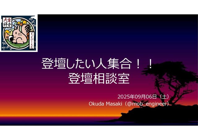 登壇したい人集合!! 登壇相談室 2025年09月06日(土) Okuda Masaki(@mob_engineer)
