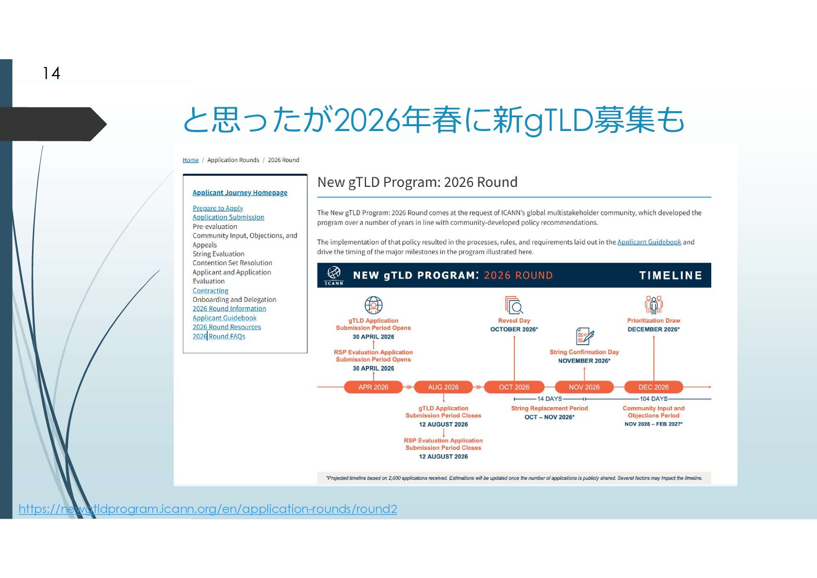 2000年に追加されたgTLD .biz .info .name .pro .museum .aero .coop 2003年に追加されたgTLD .jobs .travel .mobi .cat .asia .tel とは言えドメイン申請そのものが手続きが煩雑だっ たことから、ドメイン申請緩和が行われた ドメイン申請緩和によって地理的トップドメインが 生まれた 7
