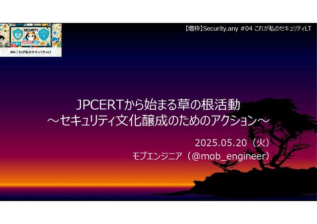 2025.05.20(火)に開催した「【増枠】Security.any #04 これが私のセキュリティLT」で登壇したLT資料です。