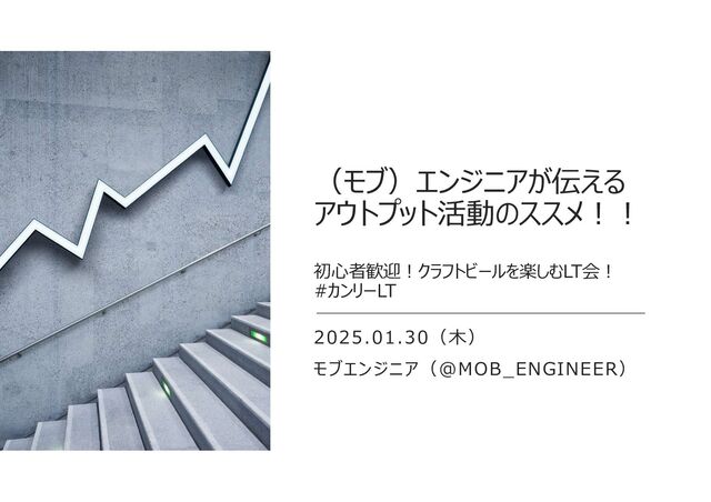 (モブ)エンジニアが伝える アウトプット活動のススメ!! 初心者歓迎!クラフトビールを楽しむLT会! #カンリーLT 2025.01.30(木) モブエンジニア(@MOB_ENGINEER)