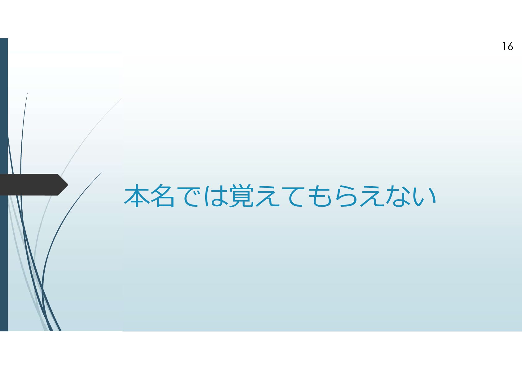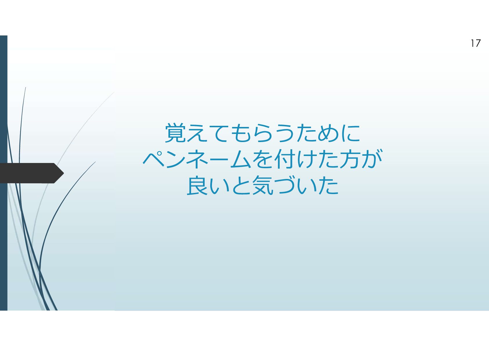 覚えてもらうために ペンネームを付けた方が 良いと気づいた 17