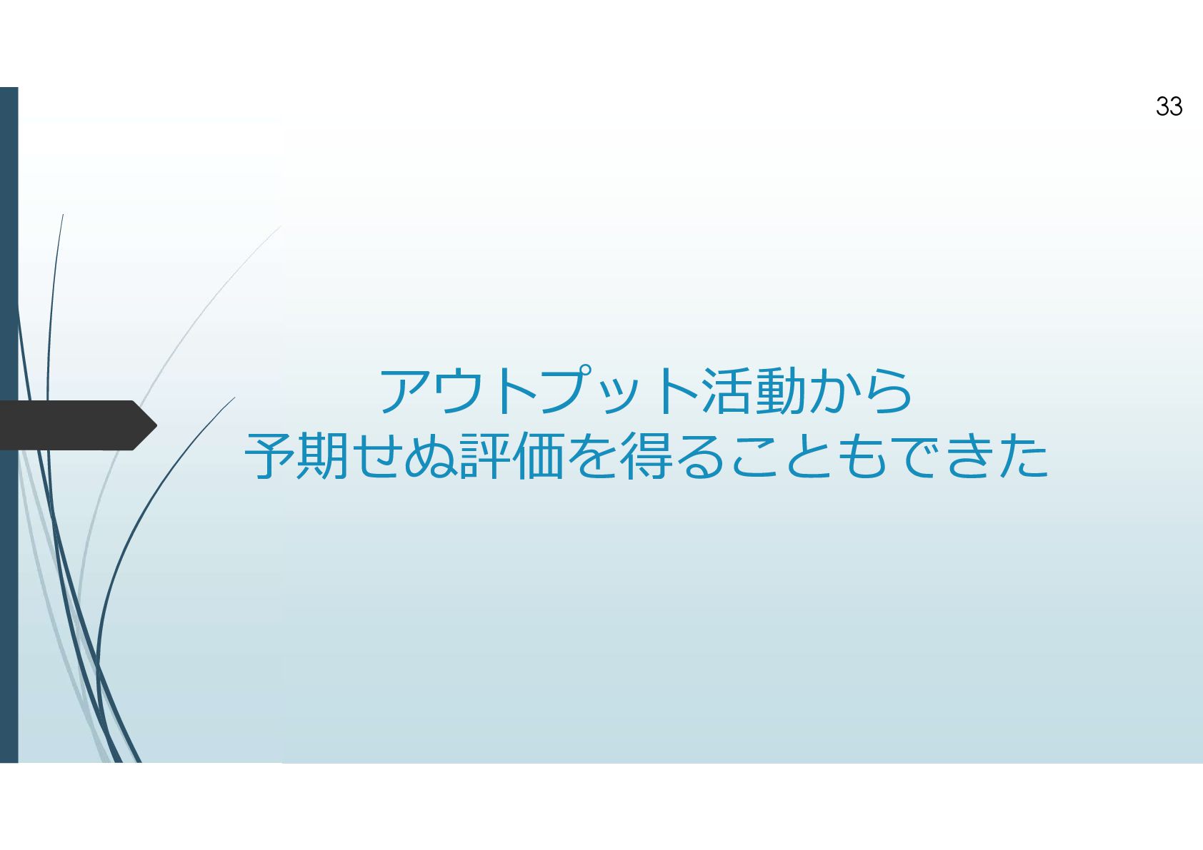 アウトプット活動から 予期せぬ評価を得ることもできた 33