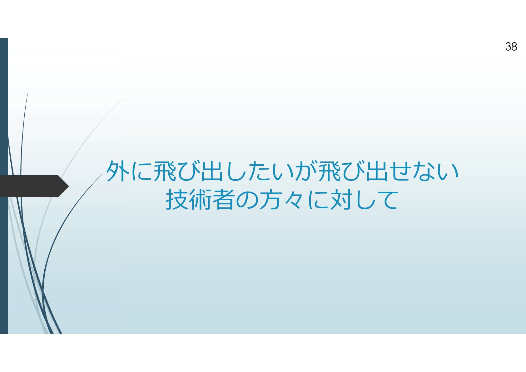 外に飛び出したいが飛び出せない 技術者の方々に対して 38