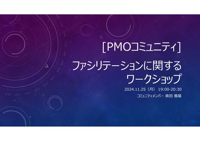 [PMOコミュニティ] ファシリテーションに関する ワークショップ 2024.11.25(月) 19:00-20:30 コミュニティメンバー 奥田 雅基