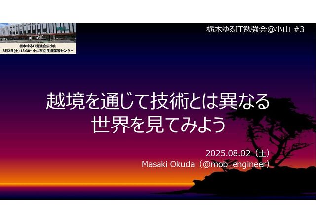 2025.08.02(土)に参加した「栃木ゆるIT勉強会@小山 #3」で登壇した資料になります。