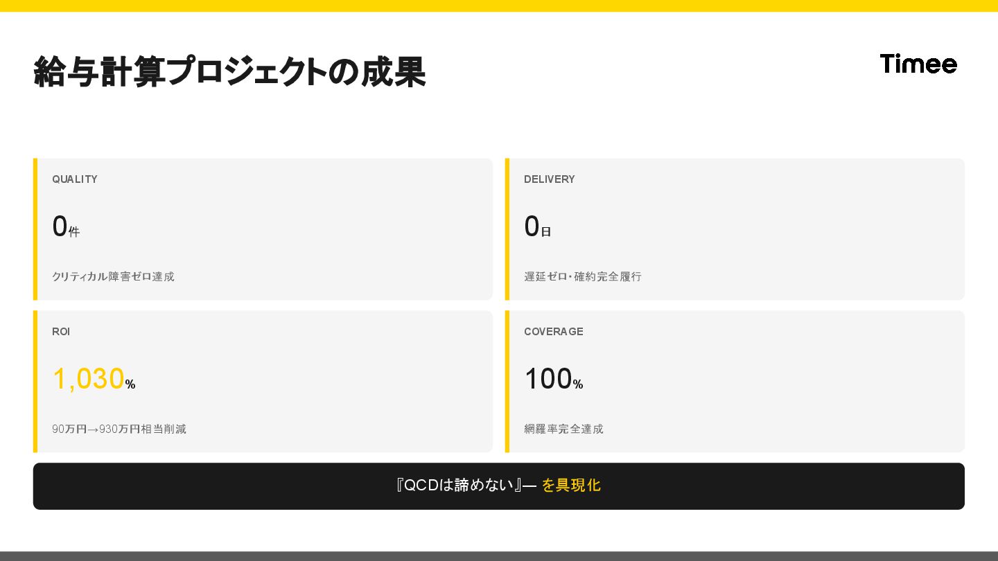 8. 給与計算プロジェクトの制約条件 QCD CONSTRAINTS Quality MAX 🔴 給与・法律に関わる最重要システム Cost MIN 🔵