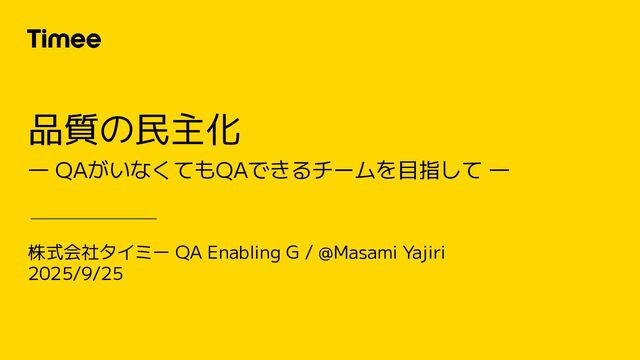 品質の民主化 ― QAがいなくてもQAできるチームを目指して ― 株式会社タイミー QA Enabling G / @Masami