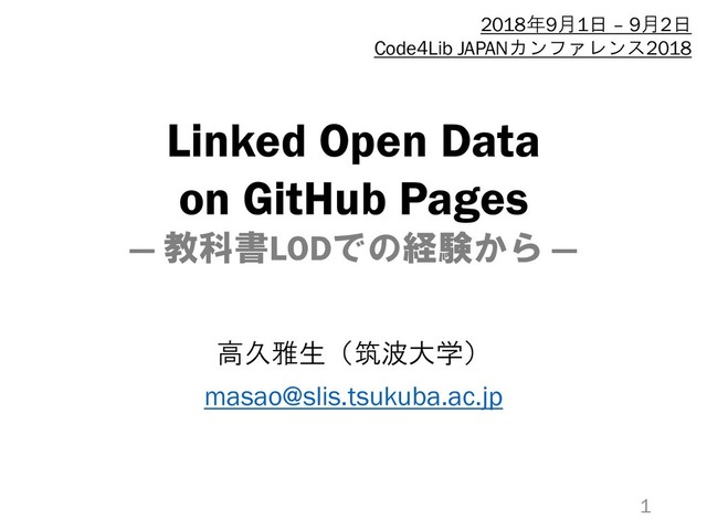 Linked Open Data on GitHub Pages ― 教科書LODでの経験から ― 高久雅生(筑波大学)