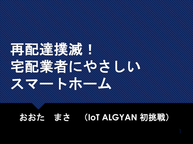 再配達撲滅! 宅配業者にやさしい スマートホーム おおた まさ (IoT ALGYAN 初挑戦) 1