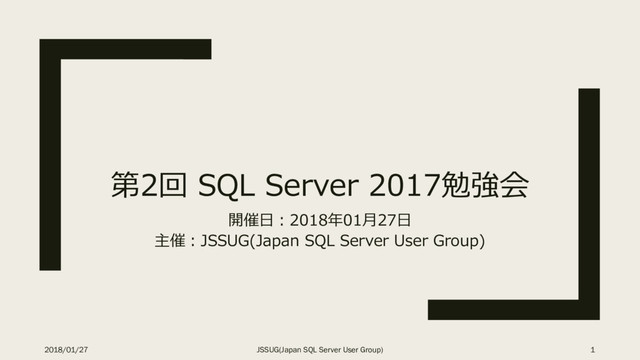 第2回 SQL Server 2017勉強会 開催日:2018年01月27日 主催:JSSUG(Japan SQL Server User Group)