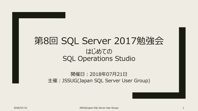 第8回 SQL Server 2017勉強会 はじめての SQL Operations Studio 開催日:2018年07月21日 主催:JSSUG(Japan