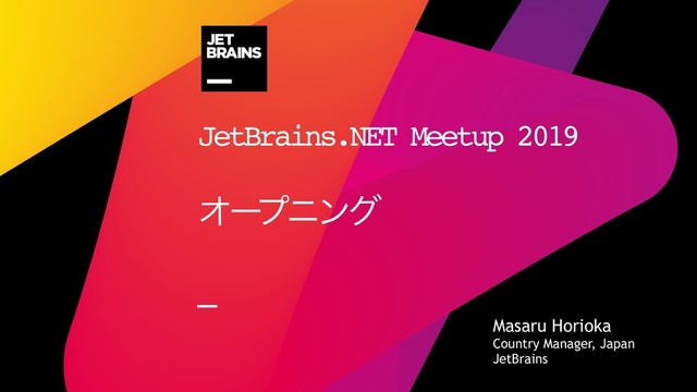 JetBrains.NET Meetup 2019 Φʔ ϓχϯά — Masaru Horioka Country Manager,
