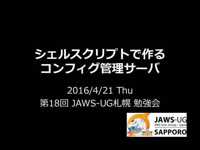 シェルスクリプトで作る コンフィグ管理サーバ 2016/4/21 Thu 第18回 JAWS-UG札幌 勉強会