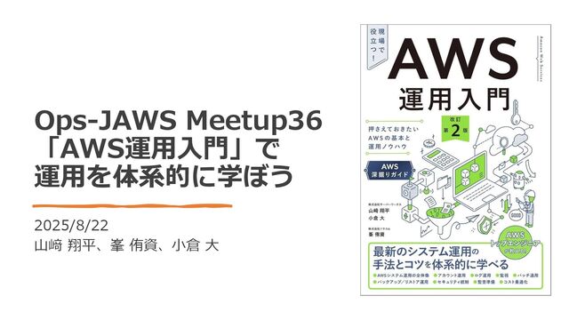 Ops-JAWS Meetup36 「AWS運用入門」で 運用を体系的に学ぼう 2025/8/22 山﨑 翔平、峯 侑資、小倉 大