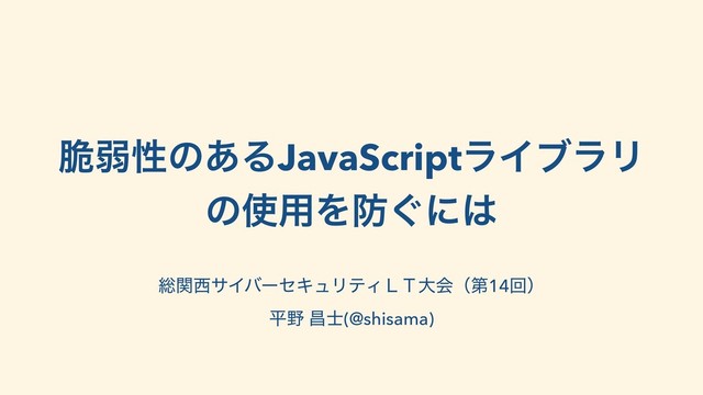 総関西サイバーセキュリティLT大会(第14回) ( https://sec-kansai.connpass.com/event/122914/ ) でJavaScriptライブラリの脆弱性に関する発表を行いました。