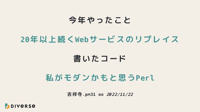 今年やったこと 20年以上続くWebサービスのリプレイス 書いたコード 私がモダンかもと思うPerl 吉祥寺.pm31 on 2022/11/22